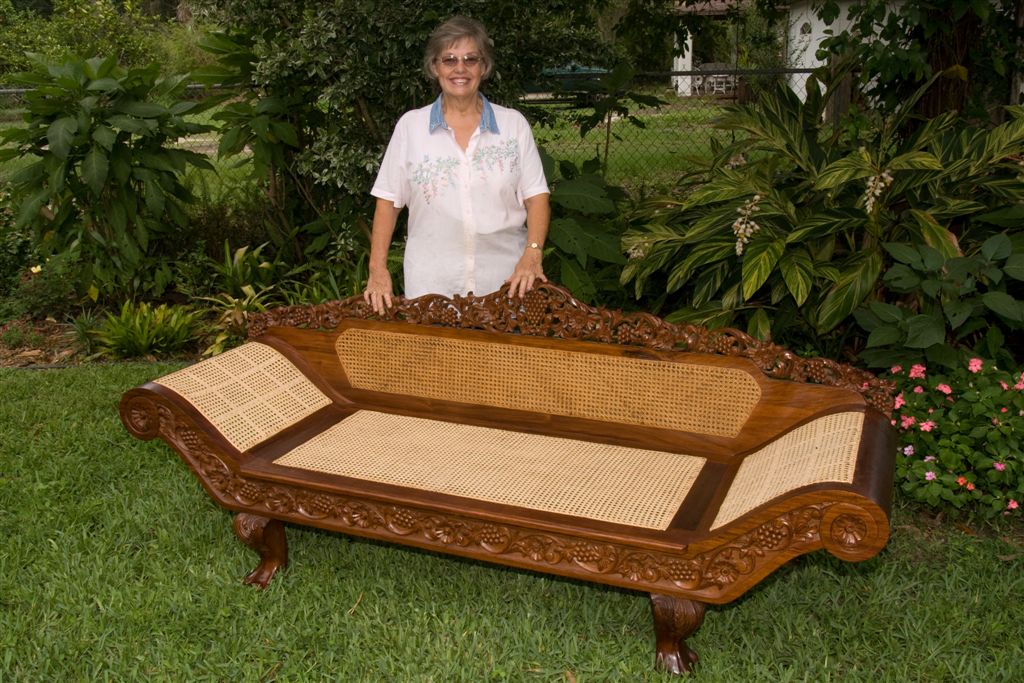 Betty Denton,known as "The Ladycaner", learned chair caning by apprenticeship in the early 1990's from her mentor, friend and distant cousin, Ned Johnson. He had been caning for 75 years and was a master at his craft. After three years of apprentice work, Betty began caning on her own. She has now been caning for close to 30 years, and is proficient at hand (thru-the-hole) caning, blind caning, primitive (over-the-round) caning, splint, rush, and press-in caning.