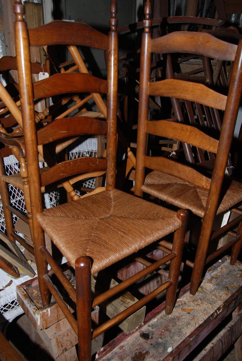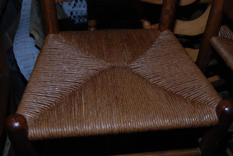 A common weave found on those rocking chairs at your favorite Florida native restaurant... or on ladder-back dining chair, as shown below. Rush was originally done using rolled cat tail leaves. Although natural materials are still available (though quite expensive), less expensive, man-made fibre rush material is most often used.